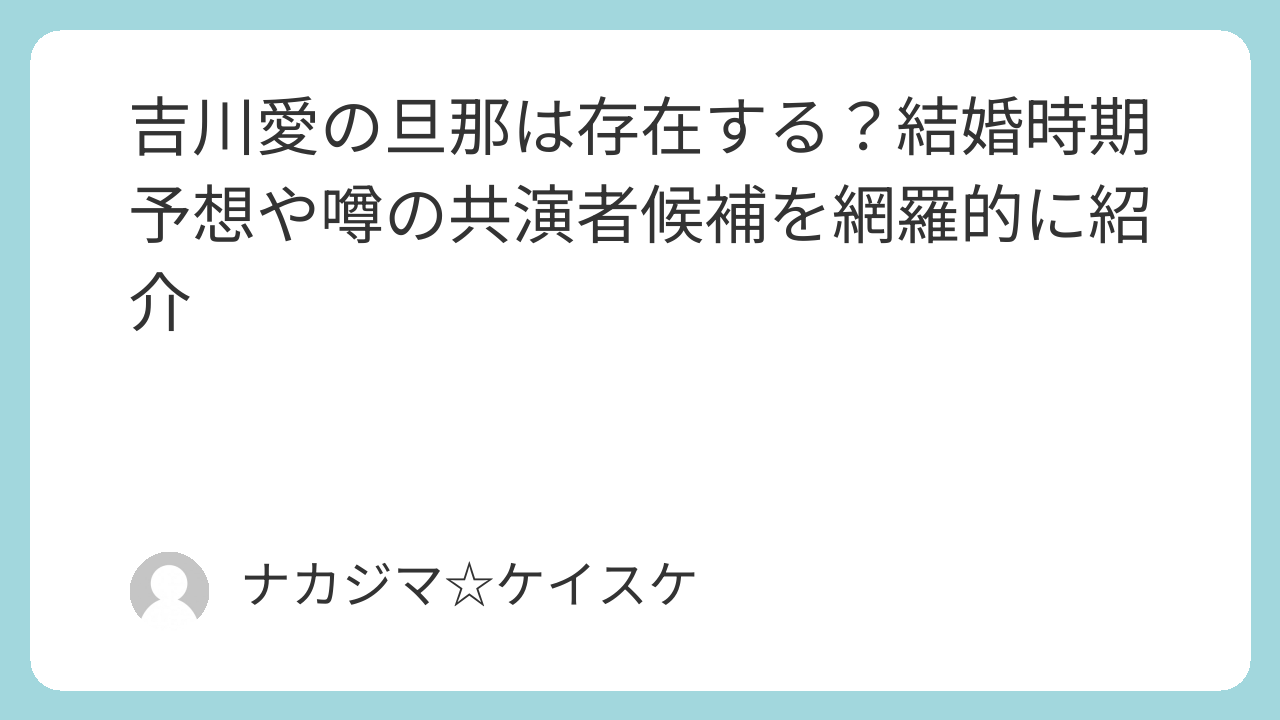- 吉川愛 旦那候補を作品・ルーツから読み解く【徹底ガイド】