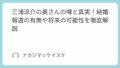 噂の発生時期 | 主な発端 | 噂の具体的内容 | 決定的証拠の有無 |